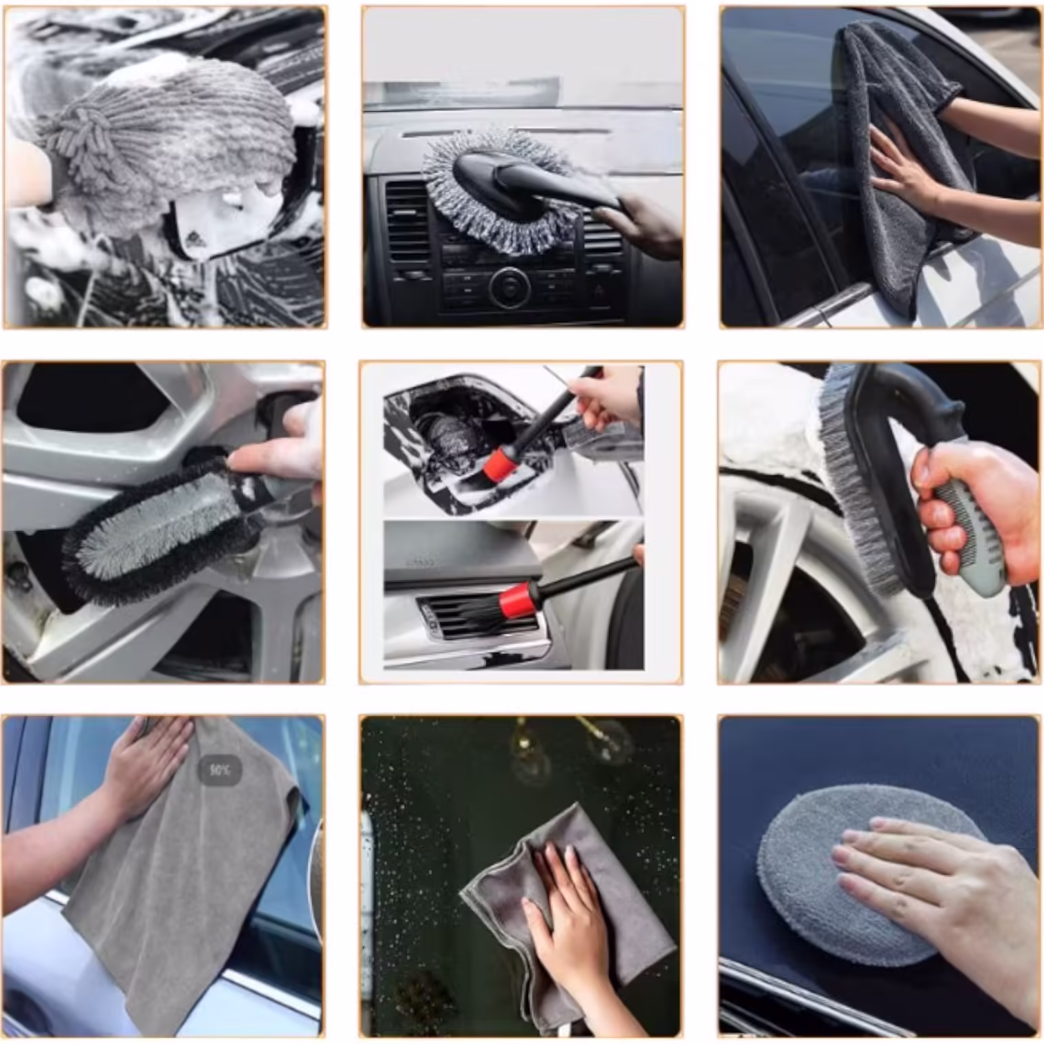 Diversitate în Utilizare: Setul cuprinde o gamă largă de unelte care pot fi folosite nu doar în curățarea mașinii, ci și în întreținerea altor vehicule sau chiar în activități casnice, precum curățarea mobilierului sau a altor suprafețe din locuință.