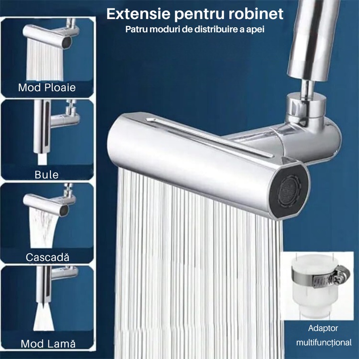 Sunt foarte multumit de acest adaptor rotativ pentru robinet. Are 4 moduri diferite de dispersie a apei, ceea ce il face extrem de versatil.