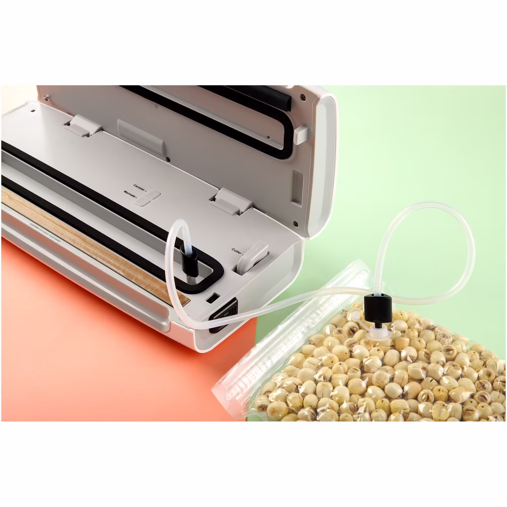 Furtun pentru vidare caserole Pentru a pastra alimentele proaspete in caserole, exista posibilitatea de a le vida direct in acestea, cu ajutorul unui “furtun” dedicat. |