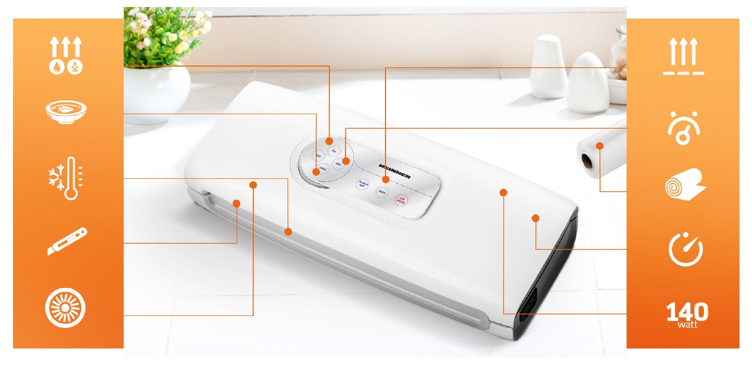 Cu aparatul de vidat HEINNER videzi umed sau uscat si te bucuri de orice preparat! Gratie functiei de vidare umeda, acum poti sigila chiar si alimente cu grad mai mare de umiditate.