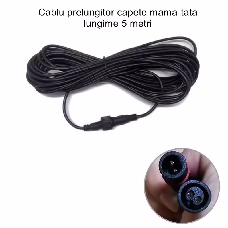 Cablu prelungitor IP65 Flippy, pentru lampi solare, material cauciuc si cupru, 2 Pini mama- tata, waterproof, 5 metri, negru