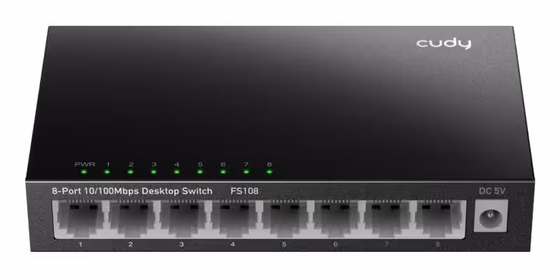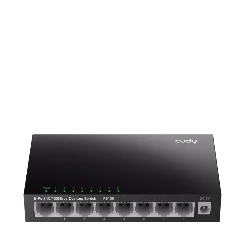 Switch Desktop Cudy 8-Port 10/100 Mbps, carcasă metalică, funcții Loop Detection și Power Saving, Plug & Play, montare pe perete