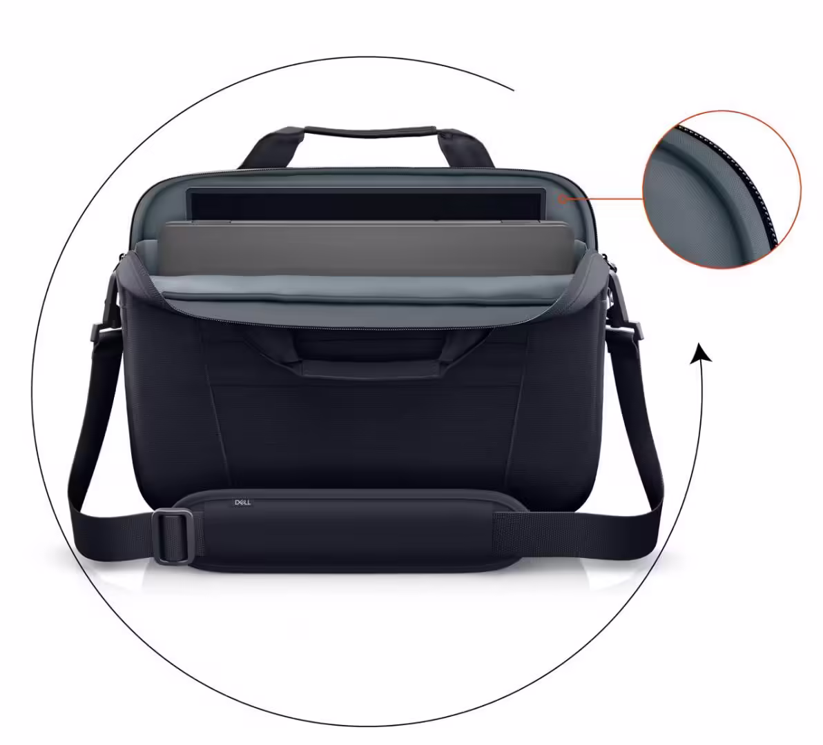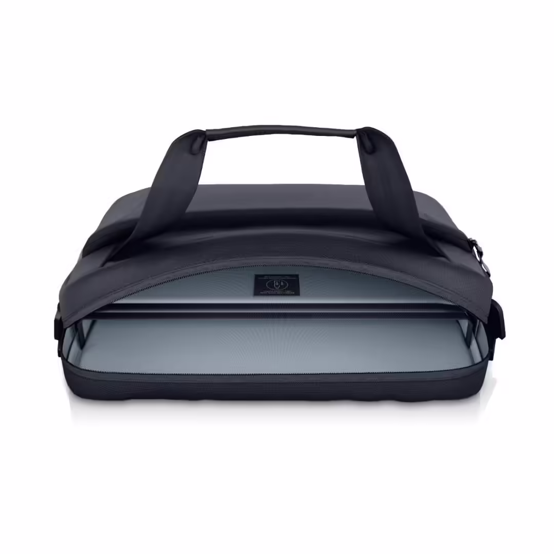 Dell EcoLoop Pro Slim Briefcase 15, Color: Black, Laptop Compatibility: Fits most laptops with screen sizes up to 15.6″ (Excluding Dell G Series Gaming, Alienware and Dell Rugged Laptop Series, max laptop dimension: 360 x 255 x 25 mm), Features: Made with solution-dyeing process for polyester that