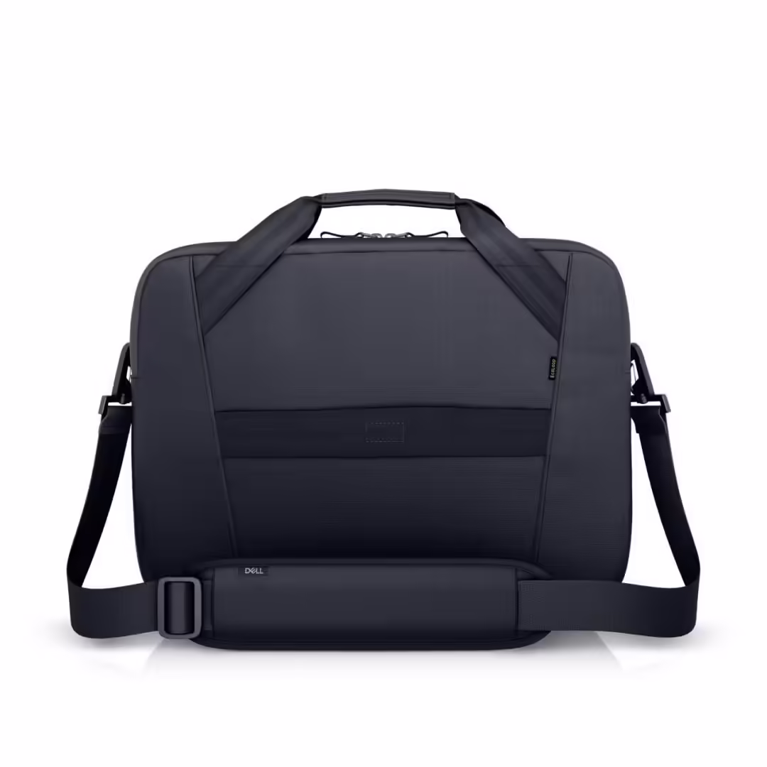 Dell EcoLoop Pro Slim Briefcase 15, Color: Black, Laptop Compatibility: Fits most laptops with screen sizes up to 15.6″ (Excluding Dell G Series Gaming, Alienware and Dell Rugged Laptop Series, max laptop dimension: 360 x 255 x 25 mm), Features: Made with solution-dyeing process for polyester that can generate up to 90% less wastewater and up to 62% less CO2 emissions and uses up to 29% less energy than traditional dyeing processes, Exterior main fabric is made with 100% recycled plastic, approximately 11 recycled plastic bottles, Recycled weatherproofing at the bottom of the bag, Packaging made with 100% recycled content in the hang tag, hang loop, plastic bag, 360° foam cushioning for complete laptop protection, Weather and dirt-resistant, heavy duty 600D body fabric, Dedicated laptop and tablet padded sleeves, Spacious compartment to store documents and everyday accessories, Zippered front pocket with purpose-built organizers, Luggage pass-through, Grab handle, adjustable shoulder strap, Reflective accents for increase visibility during low- light hours, Dimensions: 390 x 290 x 90 mm, Weight: 0.49 kg, 3y limited warranty