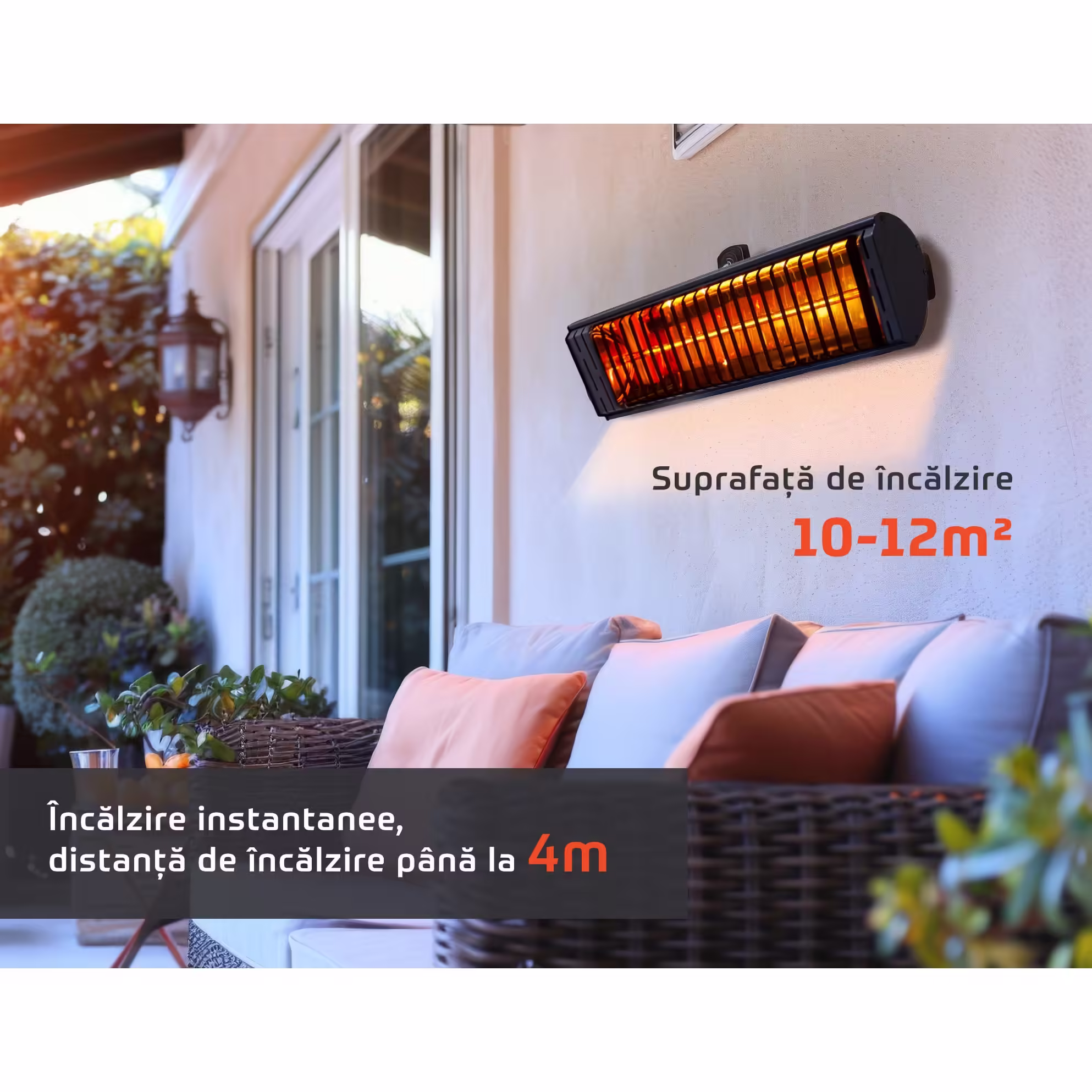 Incalzitor electric de perete Heinner, putere 2000 W, lampa chihlimbar cu stralucire redusa, incalzire instantanee