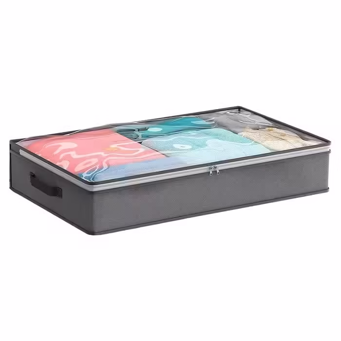 Husa de Depozitare, Flippy, Intrebuintare Multipla, Pliabila, cu Fermoar Bidirectional si Fereastra Deasupra Transparenta, Manere Laterale, Lavabila, 65x45x15 cm, Gri