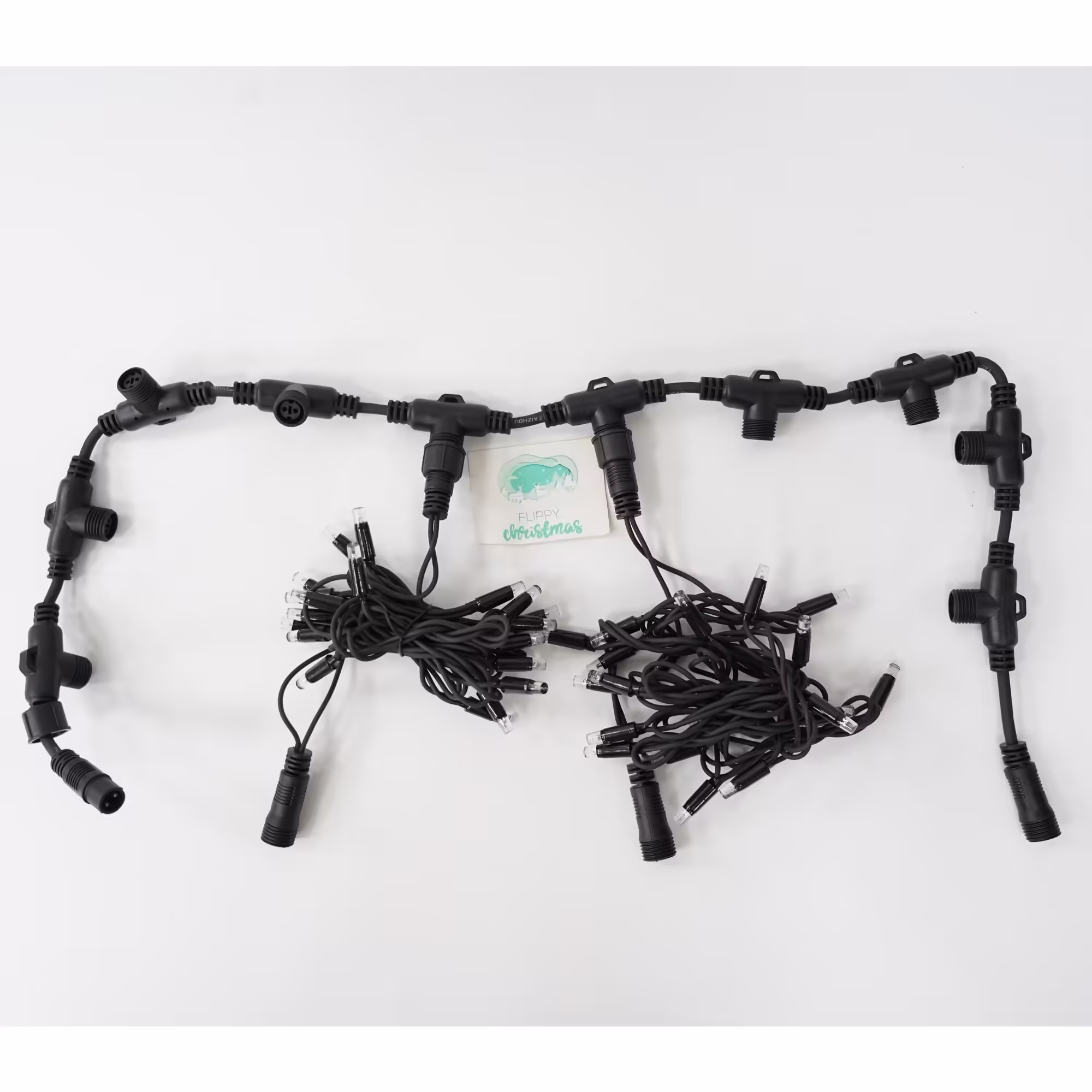 Instalatia luminoasa Flippy de tip perdea este compusa din 1 tronson de 1 m, cu 10 capete la care se adauga instalatii luminoase pentru un numar de 200 LED-uri, de culoare alb rece,realizat dintr-un silicon negru anti-inghet, iar firele electrice sunt fabricate din cupru.