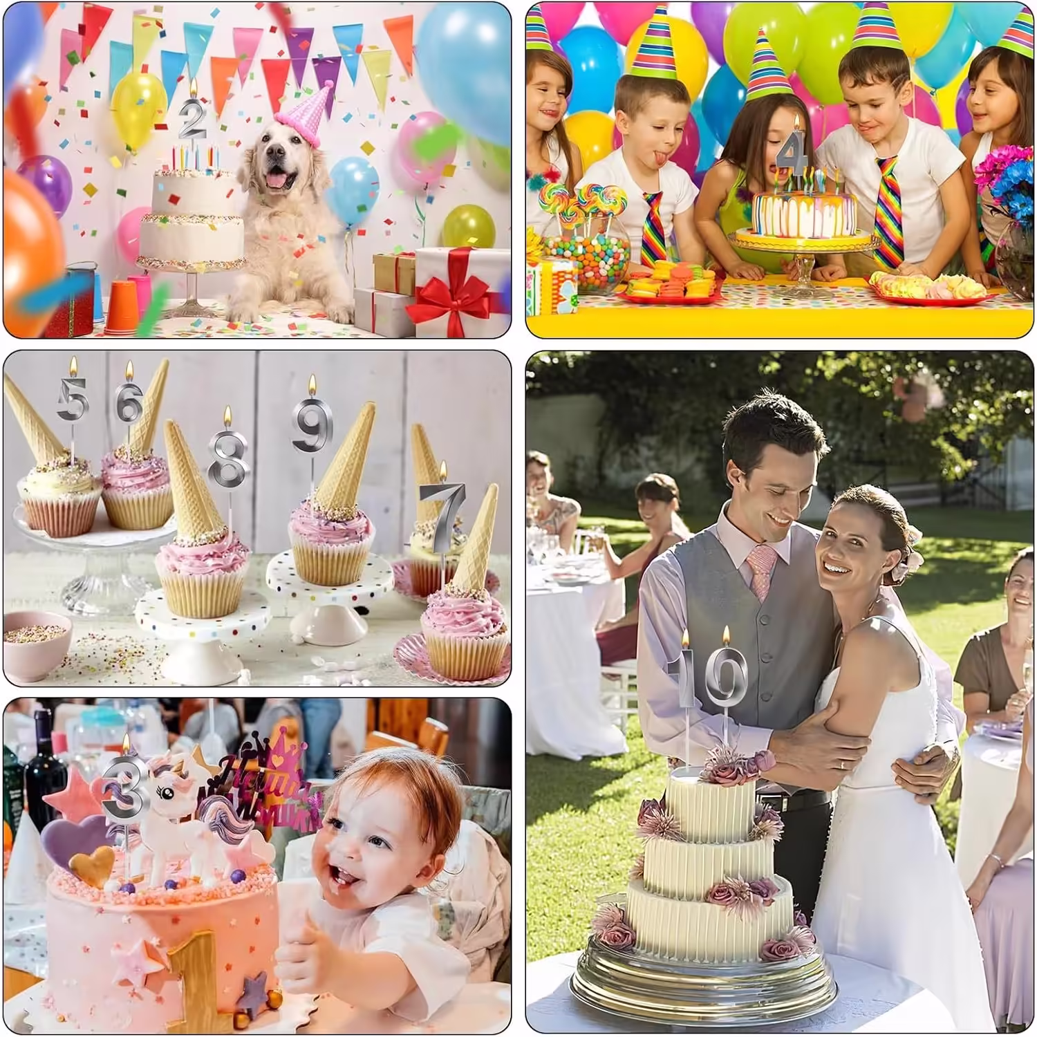 Lumânare Cifră 3, Flippy®, Model Diamond, 5 x 3.4 cm, Argintiu