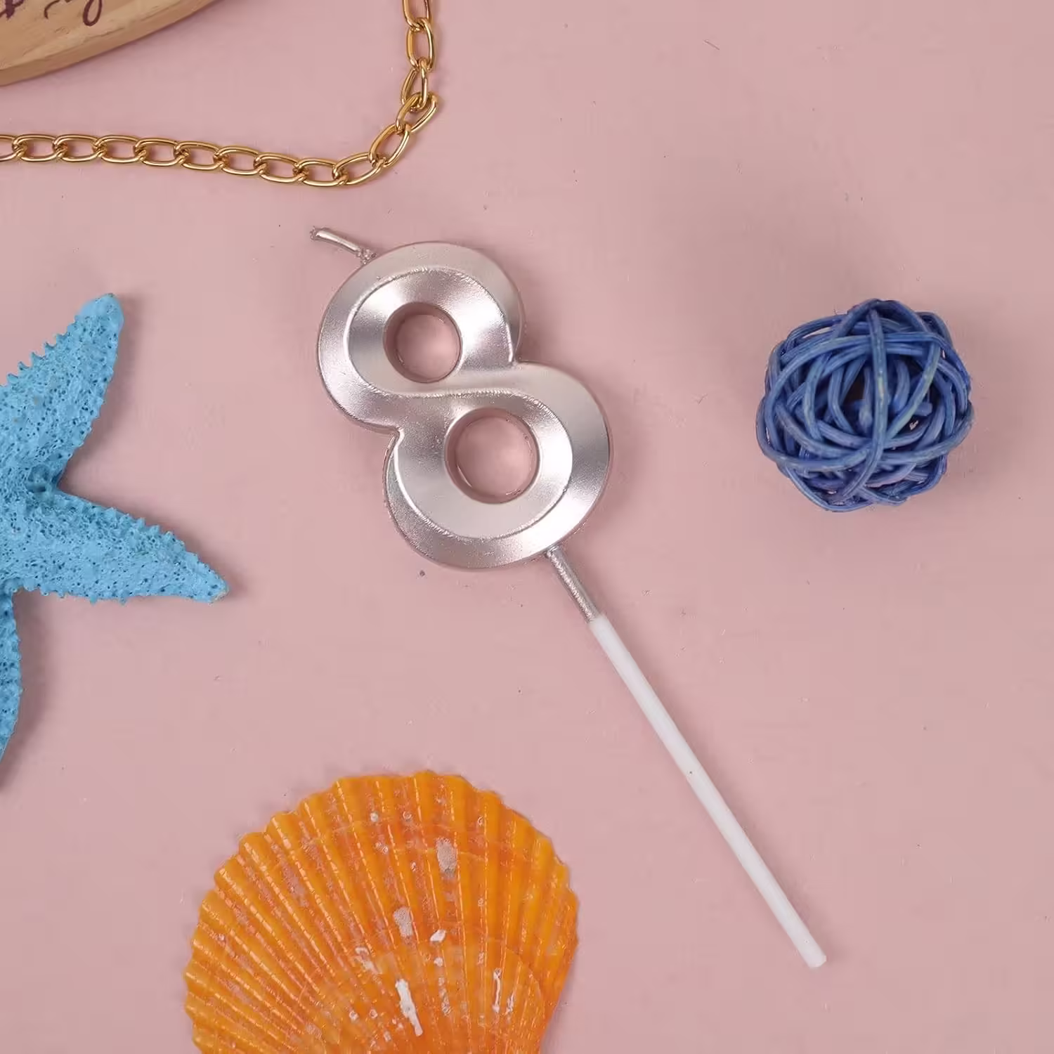 Lumanare Cifra 8, Flippy, Model Diamond, 5 x 3.4 cm, Argintiu