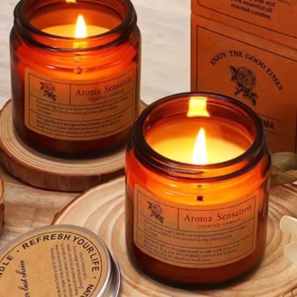 ✔ Ceară vegetală și uleiuri esențiale – arde curat, fără fum