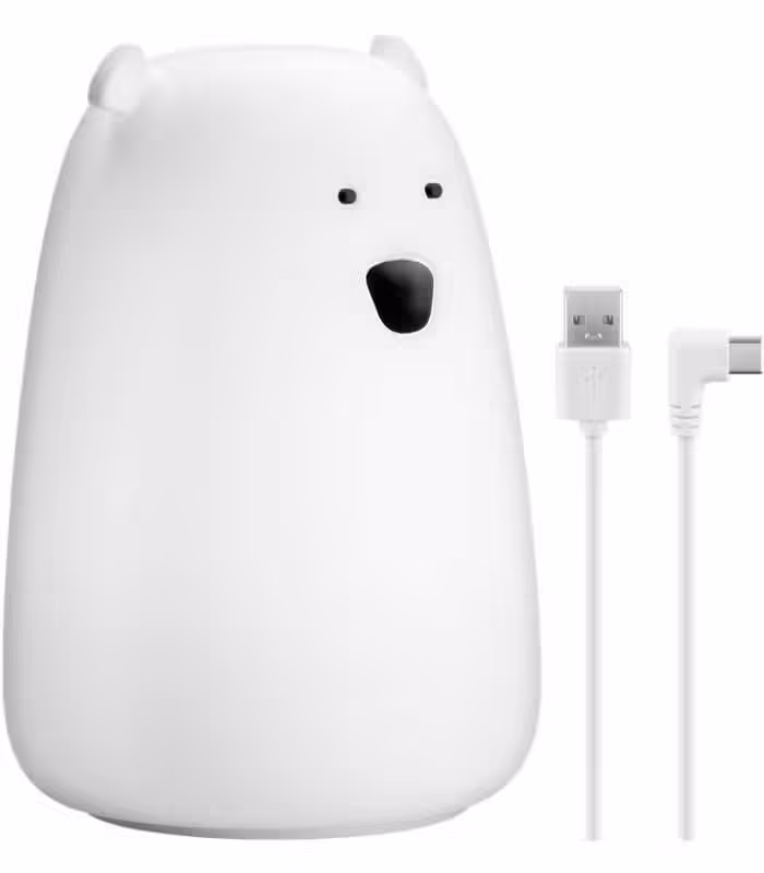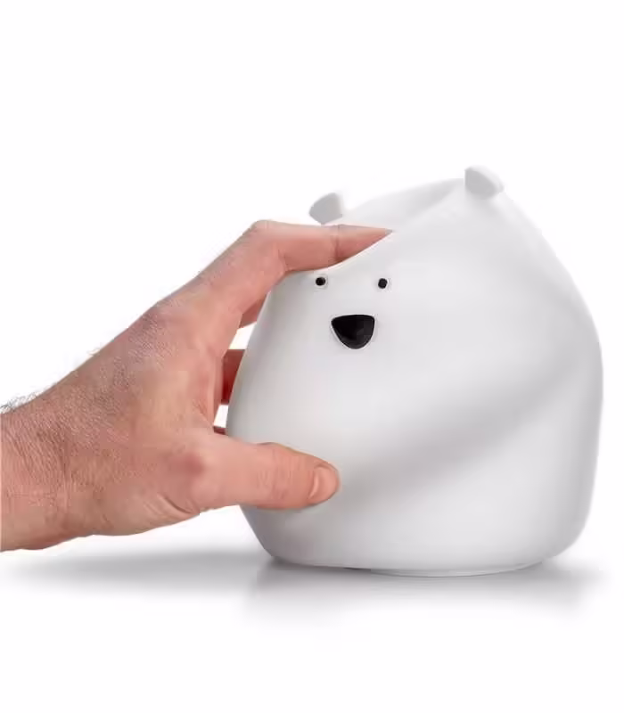Ursul polar este perfect ca ajutor pentru somn sau veioza pentru bebeluș, precum și ca noptieră sau decor de pepinieră.