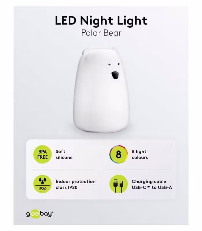 Lumina de noapte cu LED Ursul polar 7 culori 3 moduri lumina cu acumulator Goobay 61647