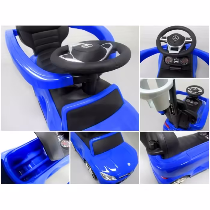 Masinuta de impins Mercedes C63 AMG R-Sport Albastru copii 1-3 ani cu maner si muzica