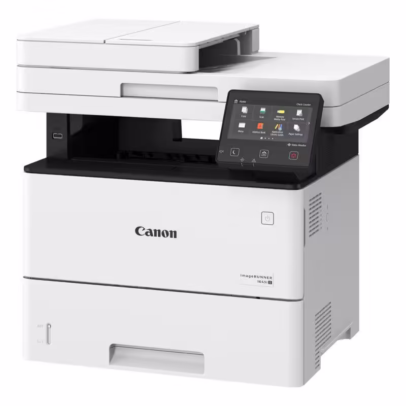 Multifunctional laser mono Canon Image Runner 1643I II, dimensiune A4 (Printare, Copiere, Scanare), viteza 43 ppm, duplex, rezolutie max 1200x1200dpi, memorie 1GB RAM, processor: 800 Mhz x 2, alimentare hartie standard 650 coli, max 2300 coli, UFR II, PCL6, PCL5, Adobe® PostScript® 3,imprimare de pe USB((JPEG/TIFF/PDF), impriamre securizata, copiere 43 ppm, pana la 999 copii, marire-micsorare 25-400%, scanare color rezolutie optica 600X600 dpi, scanare catre e-mail, PC, USB, FTP, cloud, DADF 50 coli, volum de printare max 80000 pagini/luna, ecran LCD tactil 12.7cm, interfata: USB 2.0 , Retea, Wireless, Wireless Direct Connection, TONERELE NU SUNT INCLUSE IN PACHET, consumabil: T06 (20500 pagini), optional: sertar 550 coli-Paper feeder PF-C1, card reader: MiCard Attachment kit-B1, Copy Card Reader-F1, Copy Card Reader Attachment-J1, Barcode Printing: Barcode Print Kit-E1E, Control I/F Kit-C1.