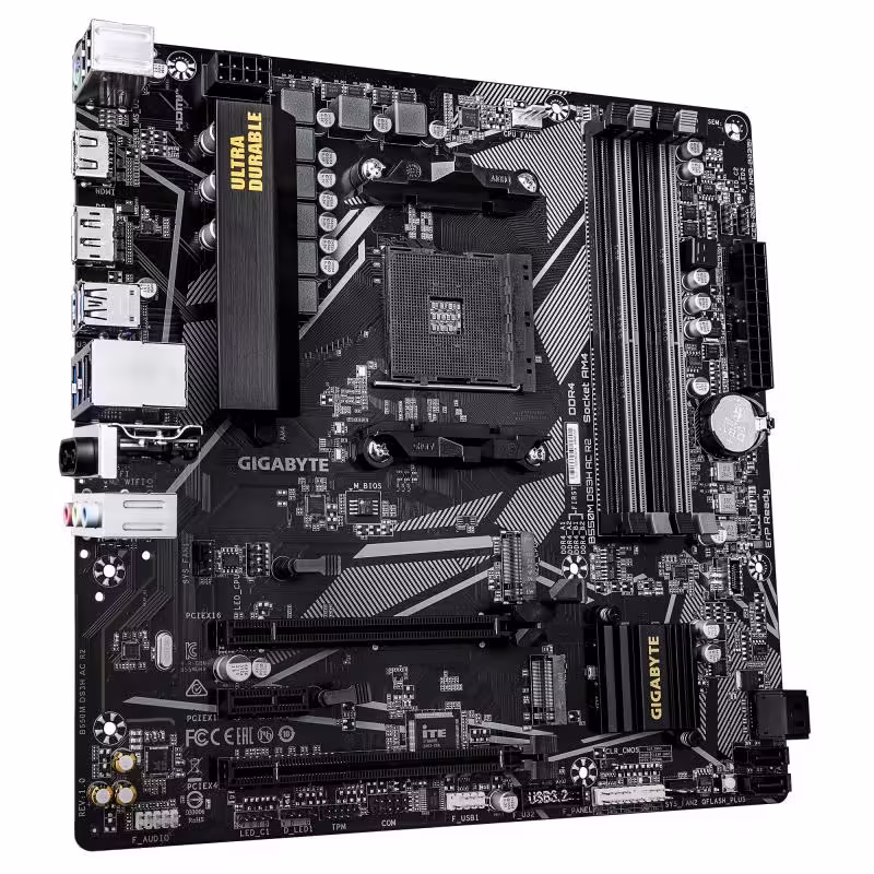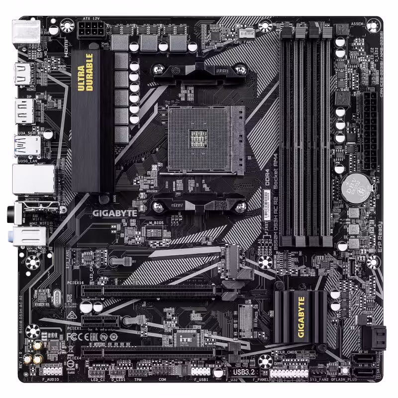 Placa de Baza GIGABYTE B550M DS3H AC R2 AM4, 4x DDR4, 1x DP 1x HDMI, 1x PCIE 4.0 x16 1x PCIE 3.0 x16 1x PCIE 3.0 x1, 2x M.2, 4x SATA 6GB/s, mATX
