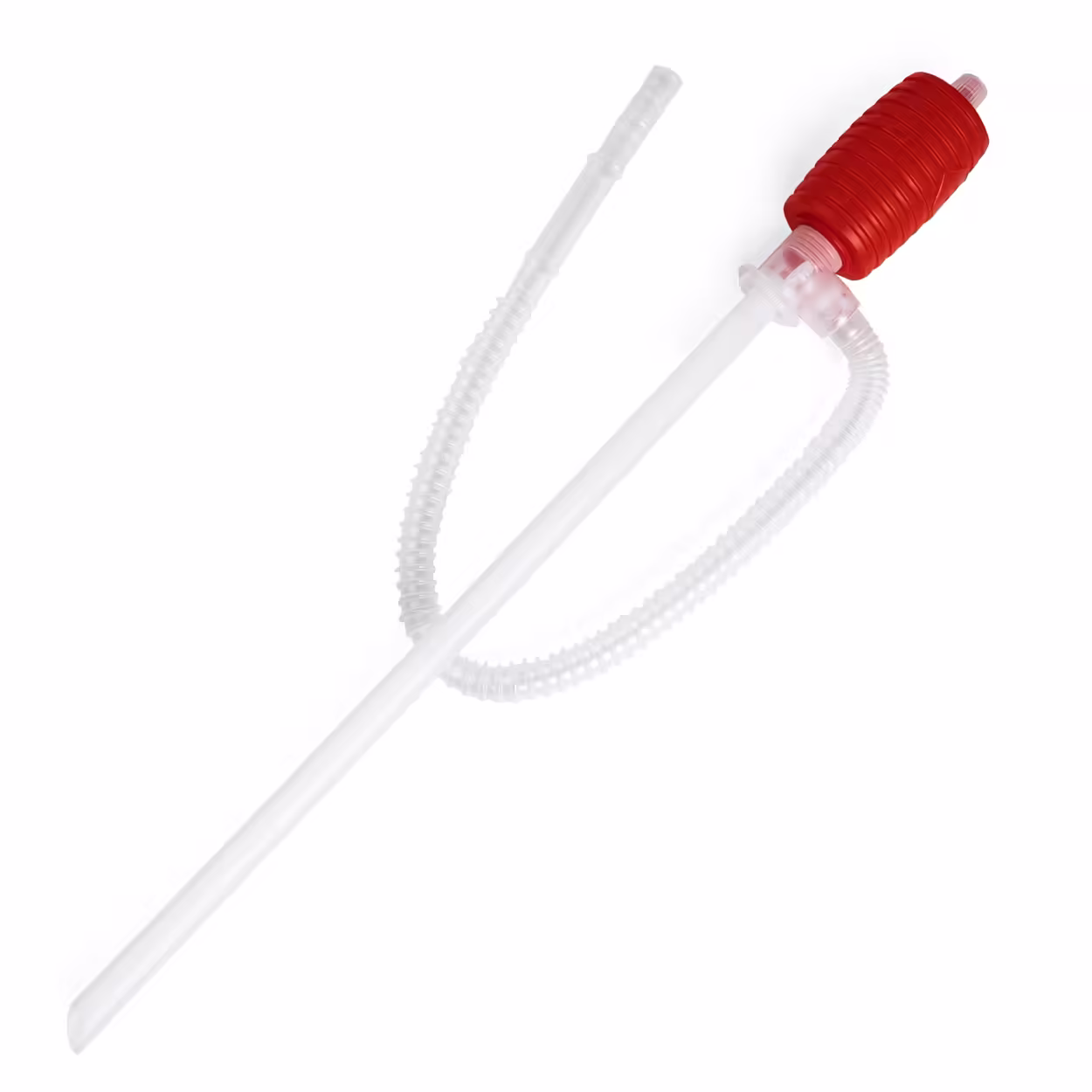 Foarte ușor de utilizat, doar scufundați un capăt al pompei în lichid, introduceți furtunul de evacuare în recipient și apăsați partea superioară a pompei.