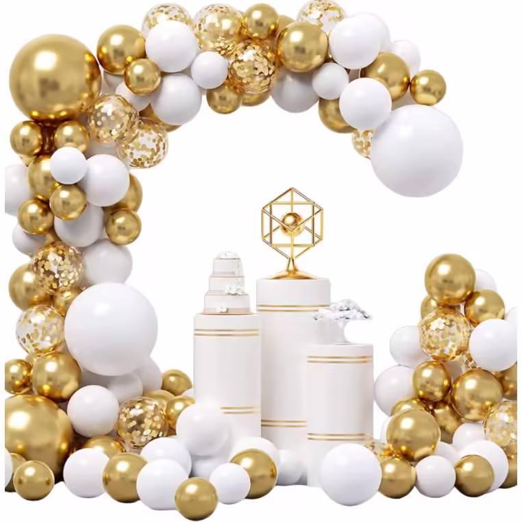 Baloane pentru Arcada decorativa, Flippy, Set 127 baloane din Latex, Model Petrecere pentru Arcada, Baloane Party, 12 cm, 25 cm, 30 cm, Alb Gold