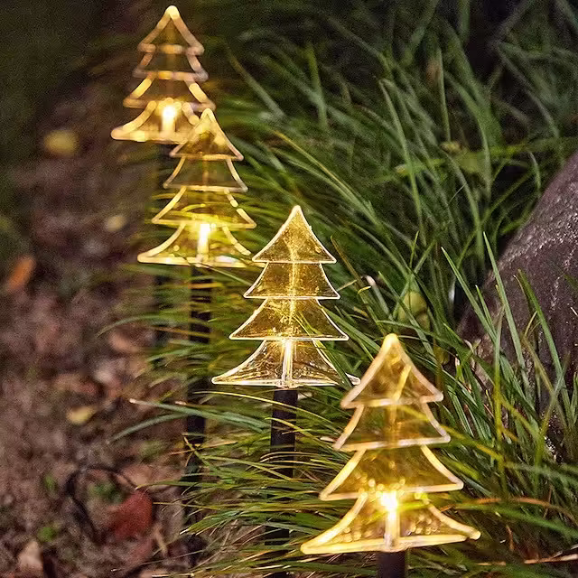 Set 5 lampi solare LED pentru exterior sub forma de Brad.
