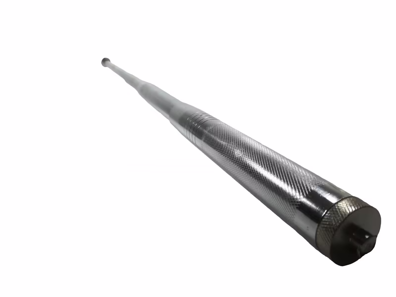 Baston telescopic pentru autoparare, alcatuit din patru elementi de otel, care se extind usor si se strang usor, cu sistem de inchidere magnetica.