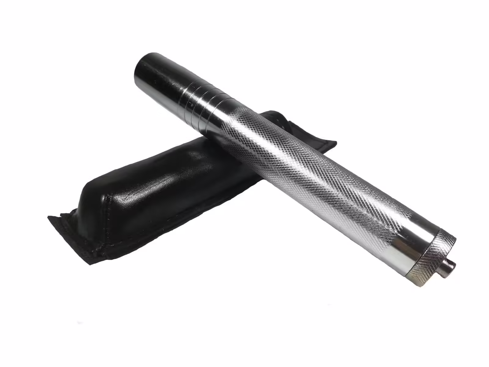 Set baston telescopic din otel, argintiu, 64 cm si box argintiu 1 cm grosime