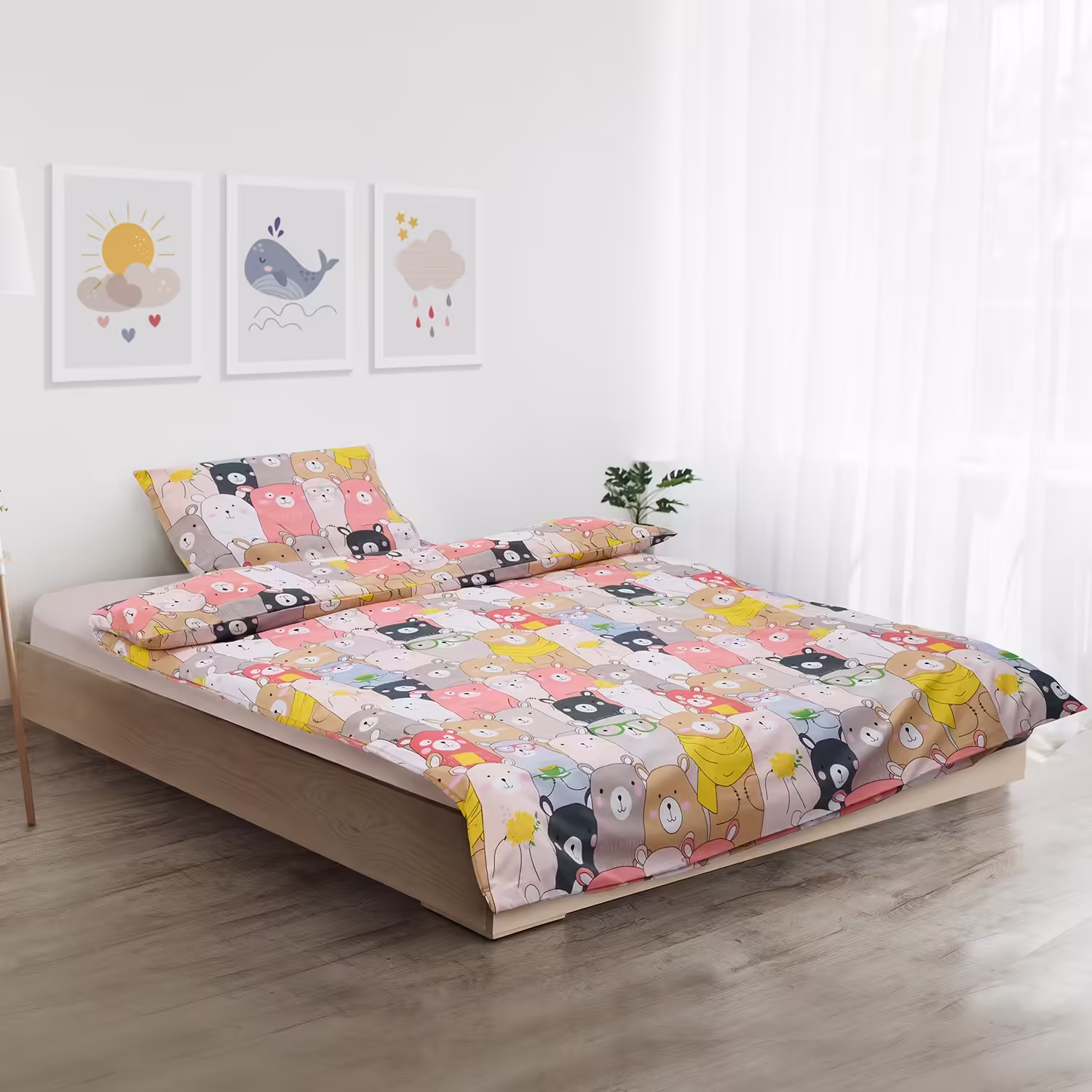 Setul de lenjerie Heinner ofera confort exceptional datorita fibrelor naturale de bumbac, care nu irita pielea sensibila a copiilor. Materialul este hipoalergenic si permite circulatia aerului, reducand transpirarea excesiva. Desenele animale distractive stimuleaza imaginatia si fac patul un loc pe care copiii il vor iubi. Perfecta pentru dormitoare, aceasta lenjerie se pastreaza frumoasa chiar si dupa multiple spalari.