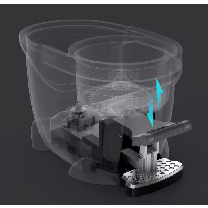 Stoarcerea mopului beneficiază de o dublă presiune, iar utilizarea unei pedale din aliaj de aluminiu asigură o stoarcere rapidă și o uscare mai eficientă.